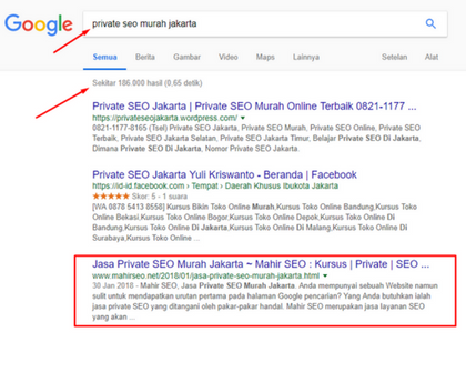 Di bawah adalah screenshot contoh hasil pencarian dari keyword “Android Murah”